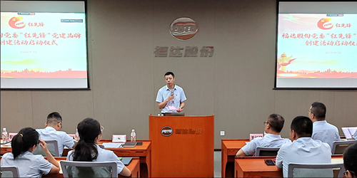 隨后,公司黨委委員陳達偉同志詳細介紹了“紅先鋒”黨建品牌的內(nèi)涵、主要措施和實施要求等內(nèi)容。他指出,“紅”是指打造紅色基因,讓黨建與企業(yè)發(fā)展同頻共振、互促共進,實現(xiàn)“黨建強、發(fā)展強”的目標(biāo);“先鋒”是代表行業(yè)特性,代表公司從事的是先進制造業(yè),代表組織及隊伍特色,代表工作重點,鼓勵及倡導(dǎo)黨員、骨干和積極分子在攻堅克難方面主動發(fā)揮“先鋒”帶頭作用。同時,他從開展“立體學(xué)習(xí)”、打造“黨建+”體系工程、建立“三亮兩創(chuàng)”機制、實施“聚力行動”和加強宣傳陣地建設(shè)等5大方面詳細闡述品牌實施具體措施和要求,通過一系列創(chuàng)新舉措和扎實工作,努力將“紅先鋒”打造成為具有鮮明特色、廣泛影響力的福達黨建品牌。