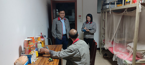 為進(jìn)一步加強(qiáng)對(duì)職工的關(guān)心關(guān)懷,陳達(dá)偉走訪員工宿舍,與職工面對(duì)面交流,詢問了解大家的生活起居、工作情況以及存在的困難,“零距離”傾聽職工心聲。